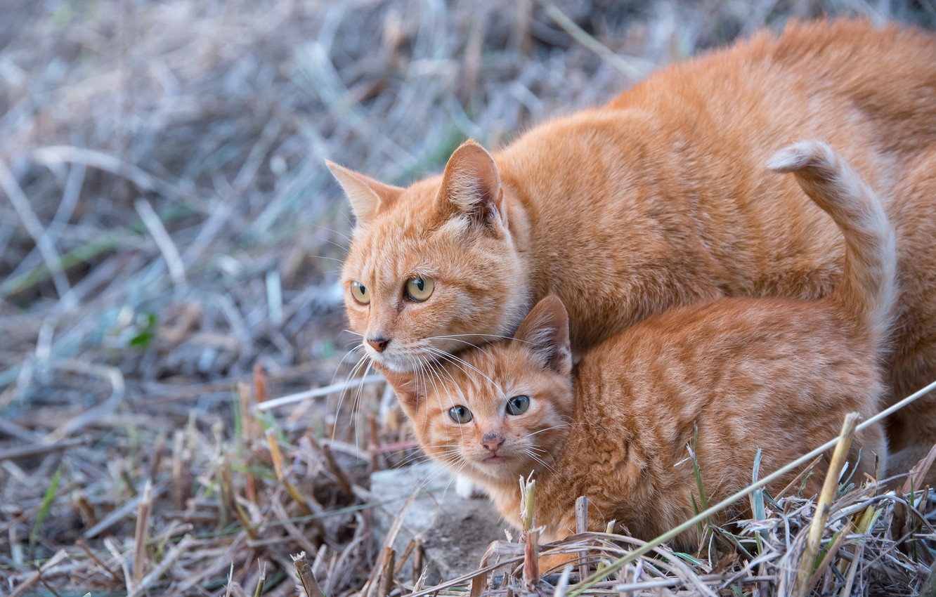 Уже зовсім старенька кішка грілася на теплому сонечку. І тут раптом перед нею завертілося у погоні за власним хвостом мале руденьке кошеня. Часом його заносило в боки, коли воно не розрахувало власні сили. Але кошеня все одно вперто намагалося упіймати власного хвоста.