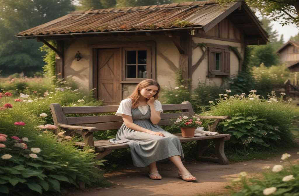 Віра сиділа на лавці біля хати та сумно схлипувала, час від часу витираючи заплакане обличчя носовичком.