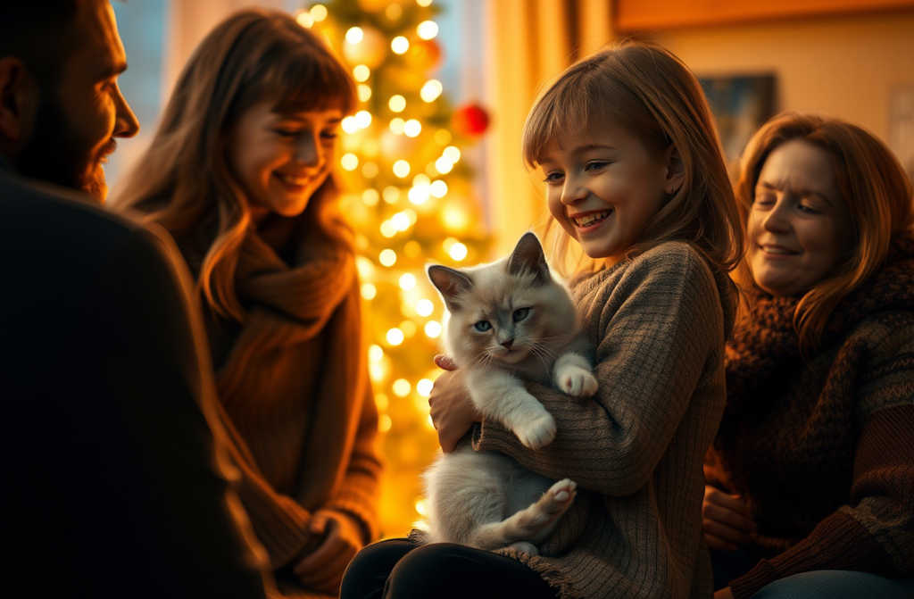 Emily and Tom rushed in, stopping dead at the sight. Right under the tree, Molly was cradling a tiny white kitten.