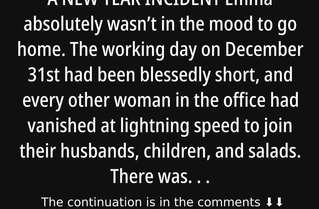 Emma absolutely wasnt in the mood to go home. The working day on December 31st had been blessedly short, and every other woman in the office had vanished at lightning speed to join their husbands, children, and salads. There was a stampede to the lifts, with shiny faces, arms straining under giant bags of clementines and a bottle of fizz eachcourtesy of Martin, their boss and the only man among them.