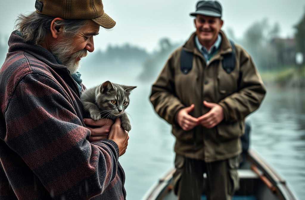 Grey appeared, shivering, pressed against my legs, and let out a plaintive meow. I scooped him up and sprinted back to the boat, leapt aboard, and set the cat beside me. The grim man stared, mouth agape, but before I could catch my breath Grey leapt from the boat, shyly tucked his lone left ear against his head, gave a soft meow, then bolted away.