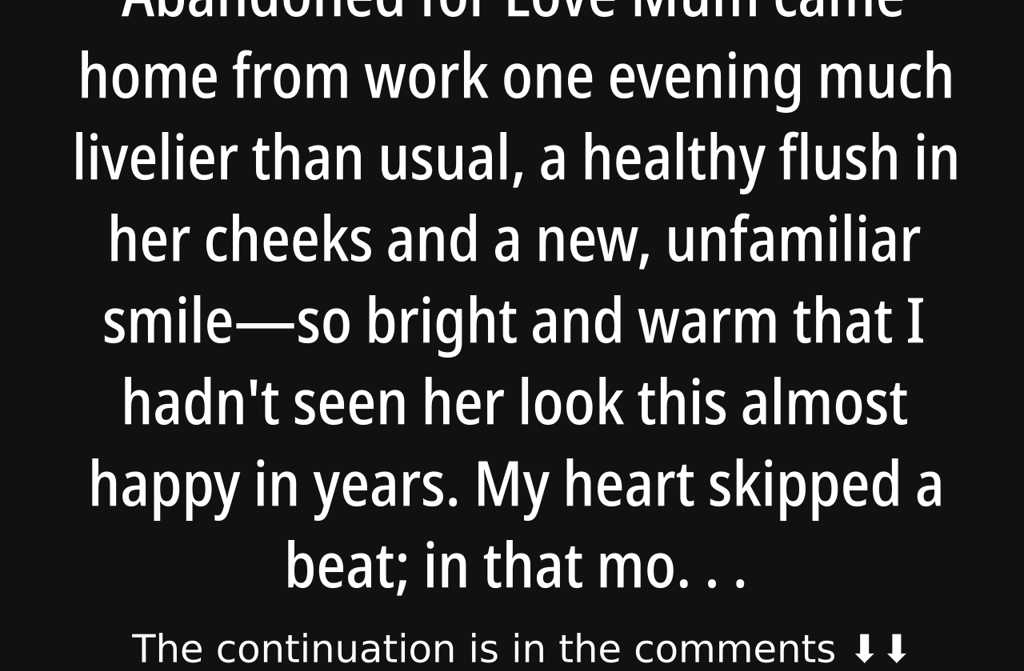 Mum came home from work one evening much livelier than usual, a healthy flush in her cheeks and a new, unfamiliar smileso bright and warm that I hadn’t seen her look this almost happy in years. My heart skipped a beat; in that moment, Mum looked almost as if she had everything she wanted from life.