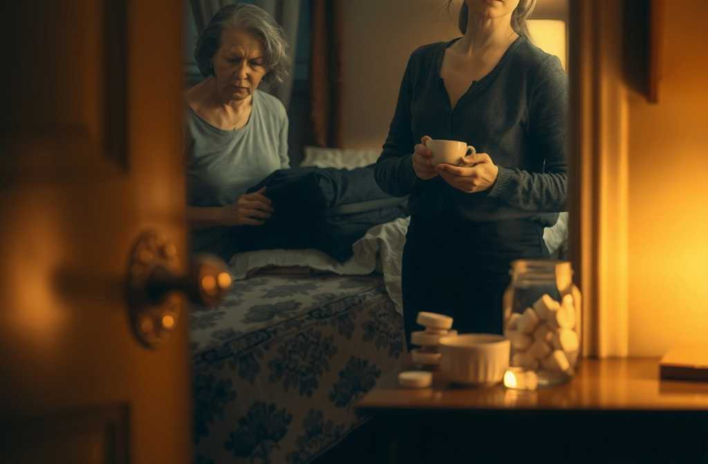 She set them down on my bedside table and waited. I sat up, though a wave of unease rolled over me at her insistence. Still, I didnt want to upset her, so I pretended to swallow the pill, palming it secretly, then sipped the tea and set it aside. Thank you, lovegoodnight.