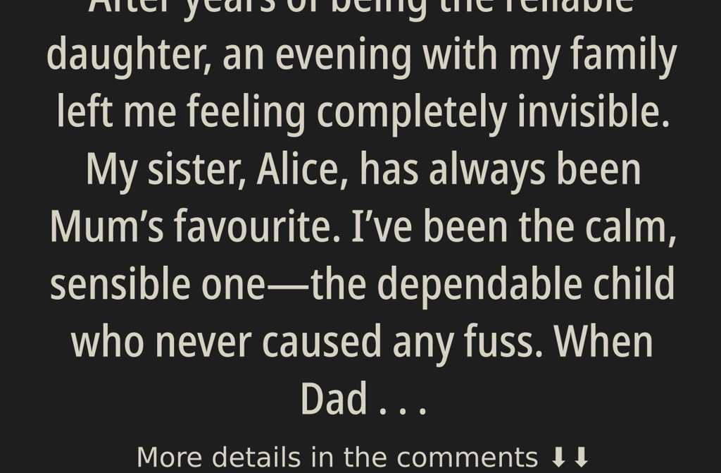 After years of being the reliable daughter, an evening with my family left me feeling completely invisible. My sister, Alice,...