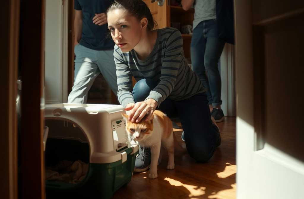 The cat Sophie was desperately trying to coerce into the carrier wriggled free, landing with an impressive thud before slinking into the shadowy corner of the hallway, groaning pitifully, like an opera ghost. Judging by his mournful expression, the catwhom Sophie, long ago and in a fit of romantic fancy, had named Mr. Darcywas determined to sell his insignificant, according to Edward, feline life as dearly as possible.