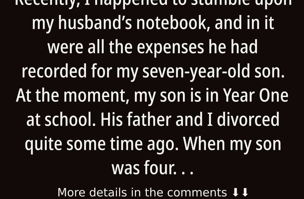 Recently, I happened to stumble upon my husbands notebook, and in it were all the expenses he had recorded for my seven-year-old son. At the moment, my son is in Year One at school. His father and I divorced quite some time ago. When my son was four, I met another man. He told me he loved me, and he promised to love my son as his own. For me, that was everything I needed to hear.