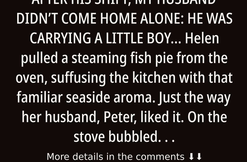 AFTER HIS SHIFT, MY HUSBAND DIDNT COME HOME ALONE: HE WAS CARRYING A LITTLE BOY Helen pulled a steaming fish...