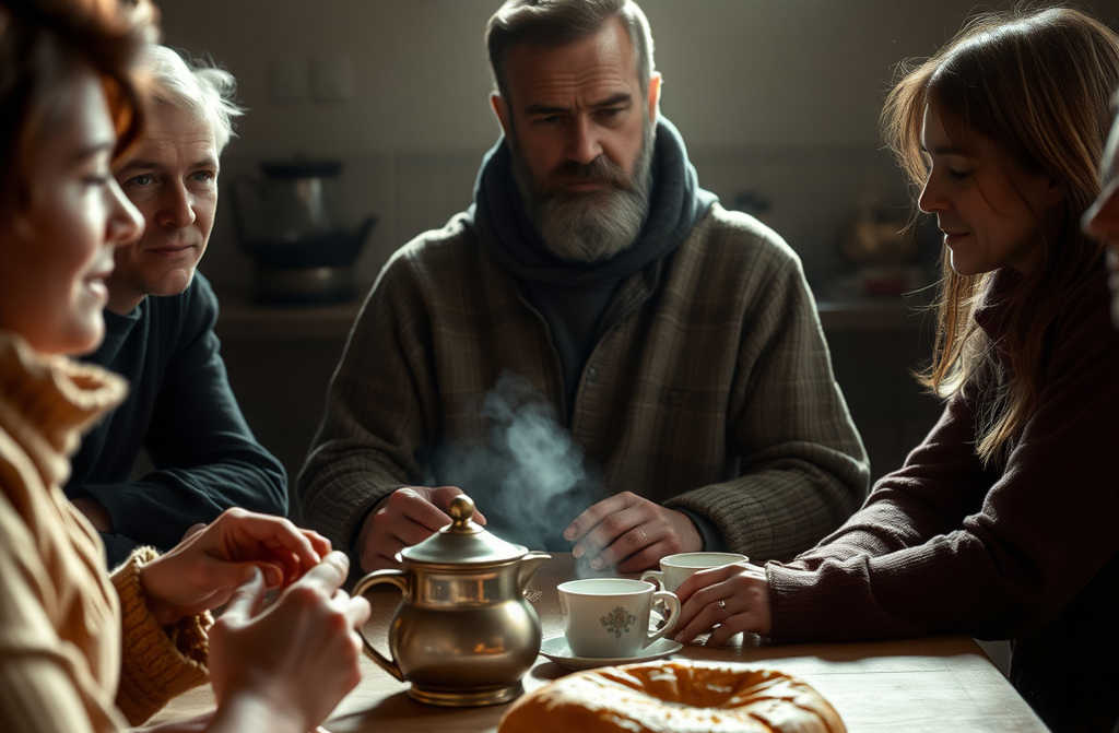 After a week, I popped back in to check on them. Whole place was transformed fire blazing, homey scent of fresh bread in the air. David was up at the table, still a bit pale, but not nearly so haunted. Karen poured him milk, and Barbara nudged a plate of jam tarts towards him. No one was being soppy, of course. But that dreadful tension it was gone.