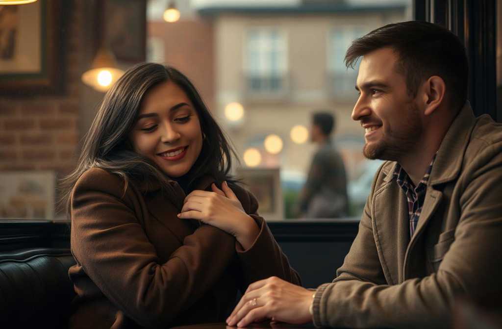 His lips move as if to say something, but the words freeze. He watches them walk away, hand in hand, disappearing through the café doors, while a bitter envy builds inside him.