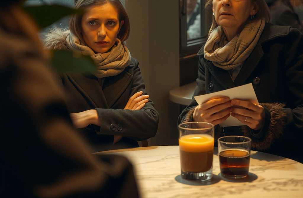 Across from her sat a friendthe same one who, weeks ago, had egged her on to get something out of that posh daughter. The friend looked put-together: neatly styled hair, a designer handbag perched beside her cappuccino. She stirred her drink, regarding Melanie with impatience.