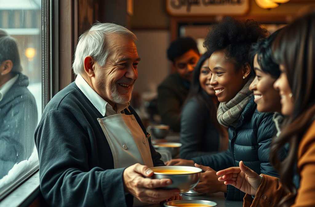 London winters were brutal. Snow piled on pavements, and icy winds cut through the streets without mercy. But that little shop was a refuge. The smell of simmering soup filled the airscents that reminded people of home, of childhood, of hand-knitted jumpers and warm blankets. Kids whod learned to shrug off everyday sadness found comfort there. The elderly, moving slowly with tired eyes, sat at the tables and felt seen, like someone out there still valued them.