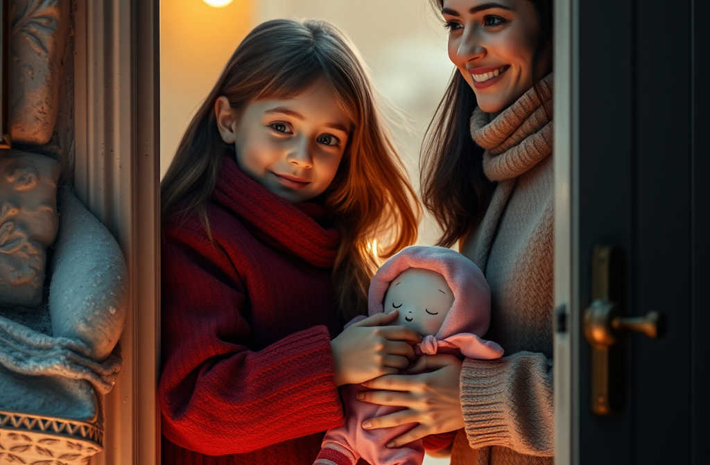 I opened it to find a brandnew doll in a pretty pink wrapping. I exclaimed with joy and asked: