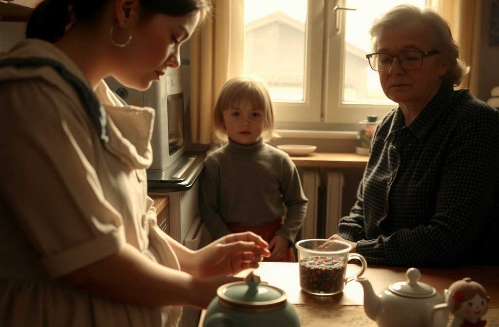 We sat for tea. Margaret, as is her way, fetched Sophie a wooden spoon and a pot to play with, straight from the bottom drawer without a word. I let it pass. It wasnt worth arguing over.