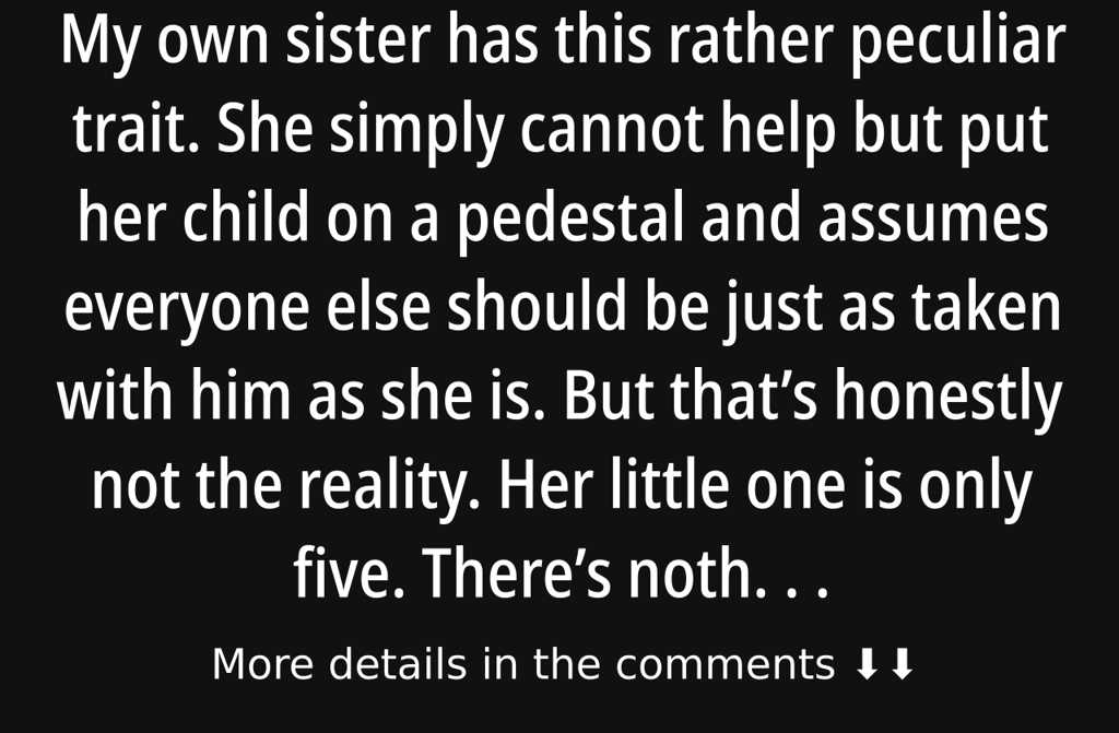 My own sister has this rather peculiar trait. She simply cannot help but put her child on a pedestal and...