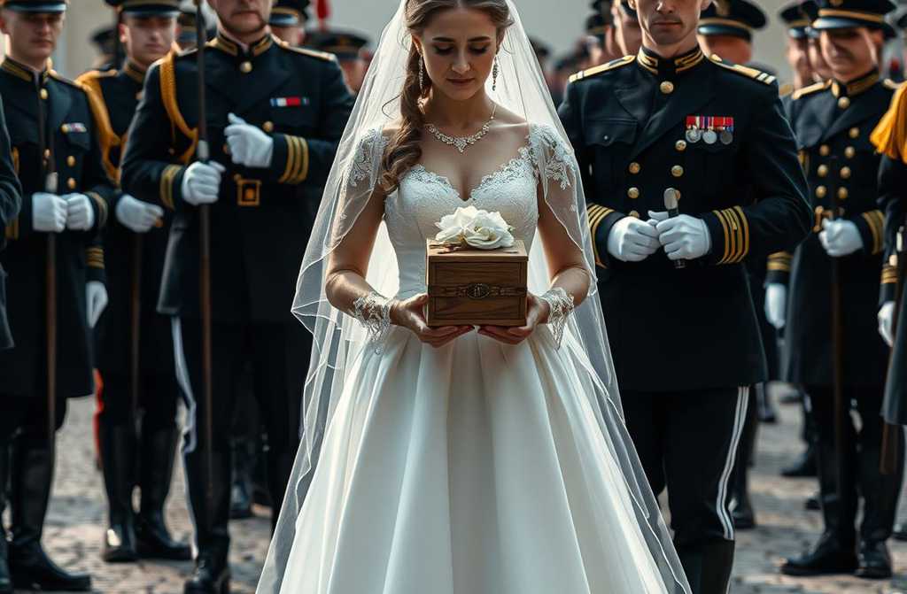 Then, one man stepped forward. His uniform was slightly differentclearly an officers. He carried a small, polished wooden box and smiled warmly at Emily before speaking loud enough for all to hear.