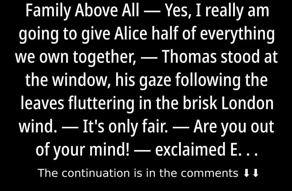 Family Above All Yes, I really am going to give Alice half of everything we own together, Thomas stood at...