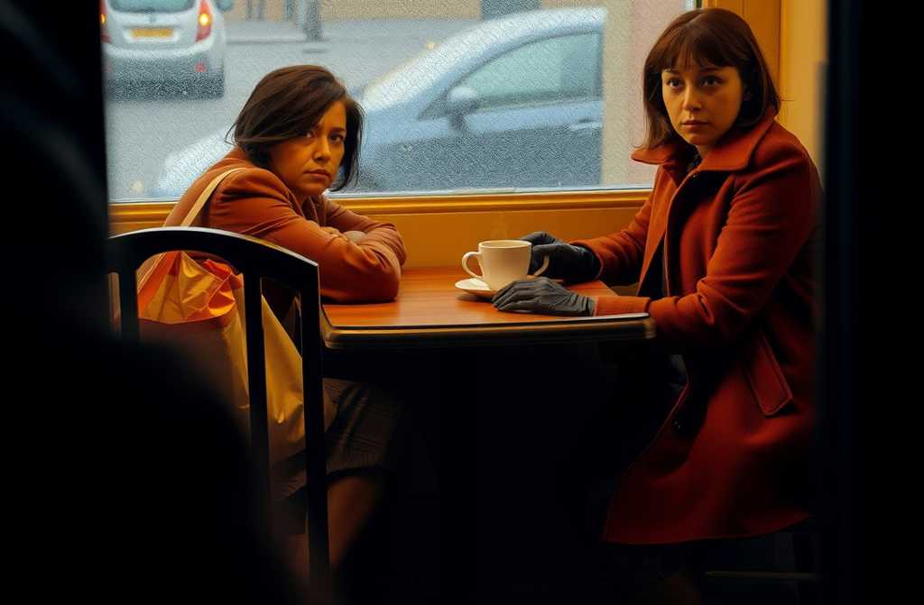 The woman removed her hat. Her hair was dark and unruly, haphazardly twisted back. Her cheeks burned from the cold. She rested her hands on the tableharsh, work-worn; knuckles cracked, nails uneven. Hands of someone who labours, not at a desk.