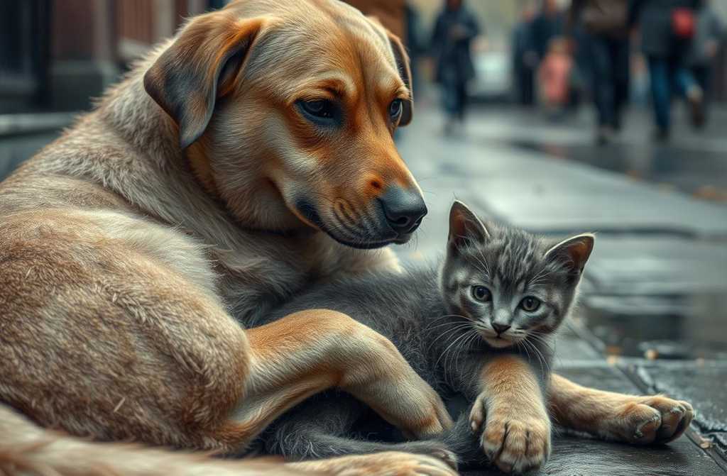 Sometimes, the dog curled his paws around his kitten, shielding it from the cold and wet. He shivered, but he licked the little thing clean. Keeping it warm and fedthats what mattered.