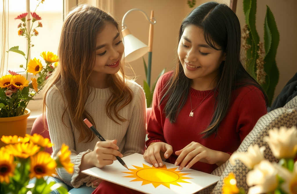 Emily went in and splurged without guilt: paints, brushes, a block of paper. Yes, it was indulgent, but she had money of her own now. Once home, she spread everything out on the table. For a long time, she just stared at the colours, at a loss. Then she dipped the brush in yellow and painted a big circle. The sun.