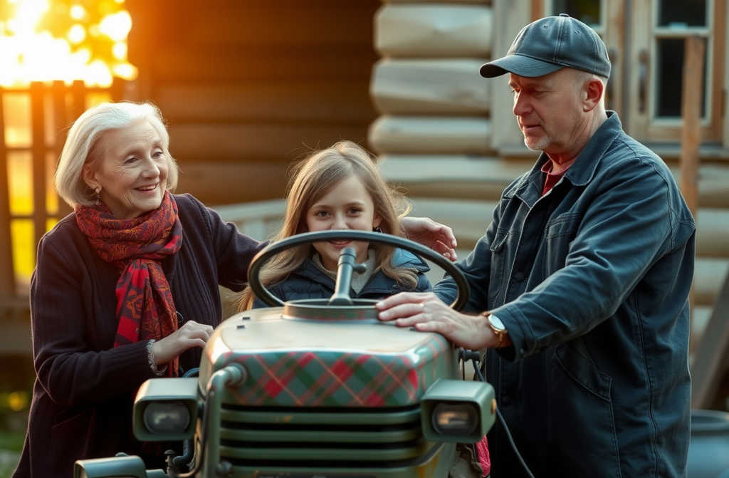 She never made itbecause she spotted a tractor coming her way. At the wheel was Stepan, and right beside him sat an angry-looking Lily.