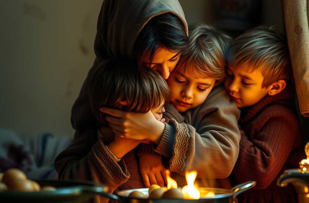 *A small pot of potatoes simmered on the stove, and in the hearth, the last of the firewood burned low. Emily wrapped her arms around her children and prayed silently:*