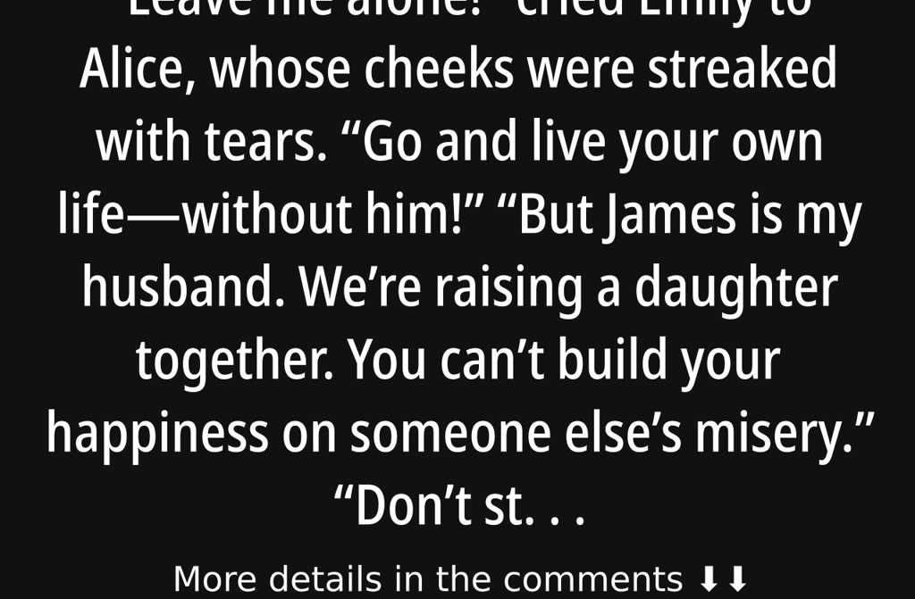 With those words, Emily turned on her heel and left. That evening, James made his decision. He packed his things and walked out on Alice. She pleaded with him to come to his senses and reconsider, but he was resolute. Alices mind swirledwhy was this woman better than her?