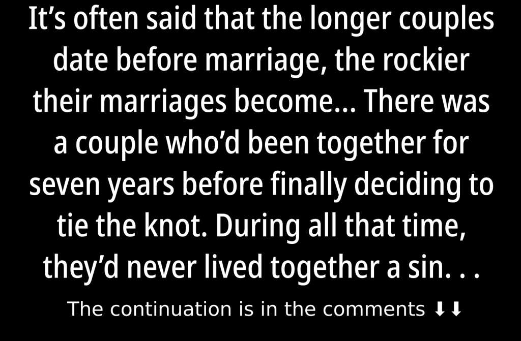 Its often said that the longer couples date before marriage, the rockier their marriages become