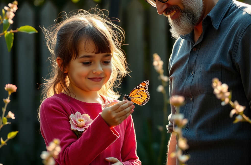 Once, my eight-year-old daughter came racing in from outside, arms flailing, exclaiming, Dad! There was a butterfly out thereso bright and huge! She pantomimed something the size of a kestrel. Everyone was too frightened to go near, except a few boys tried to get it with sticksbut even they lost their nerve!