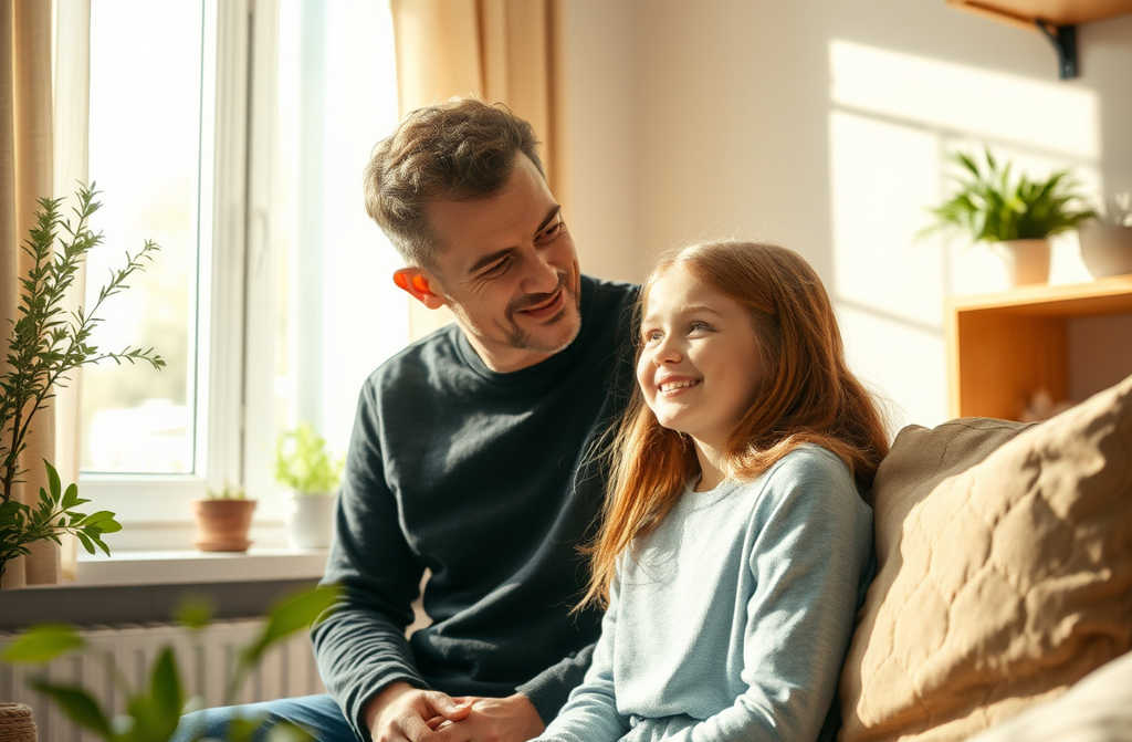 Sarah nodded, eyes filling with tears, and hugged her fathers neck, murmuring into his shirt:
