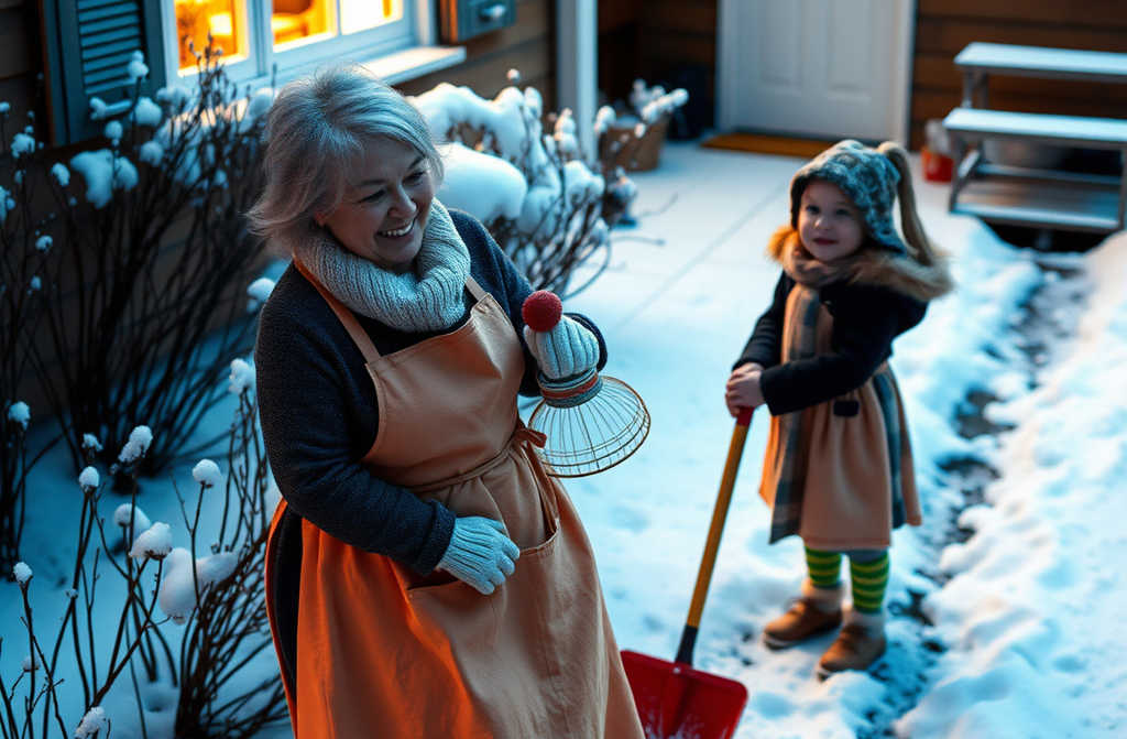 I heard the back door clatter, peeked out the windowshe was clearing the path, wrapped in that battered old parka, scarf tied over her hair.