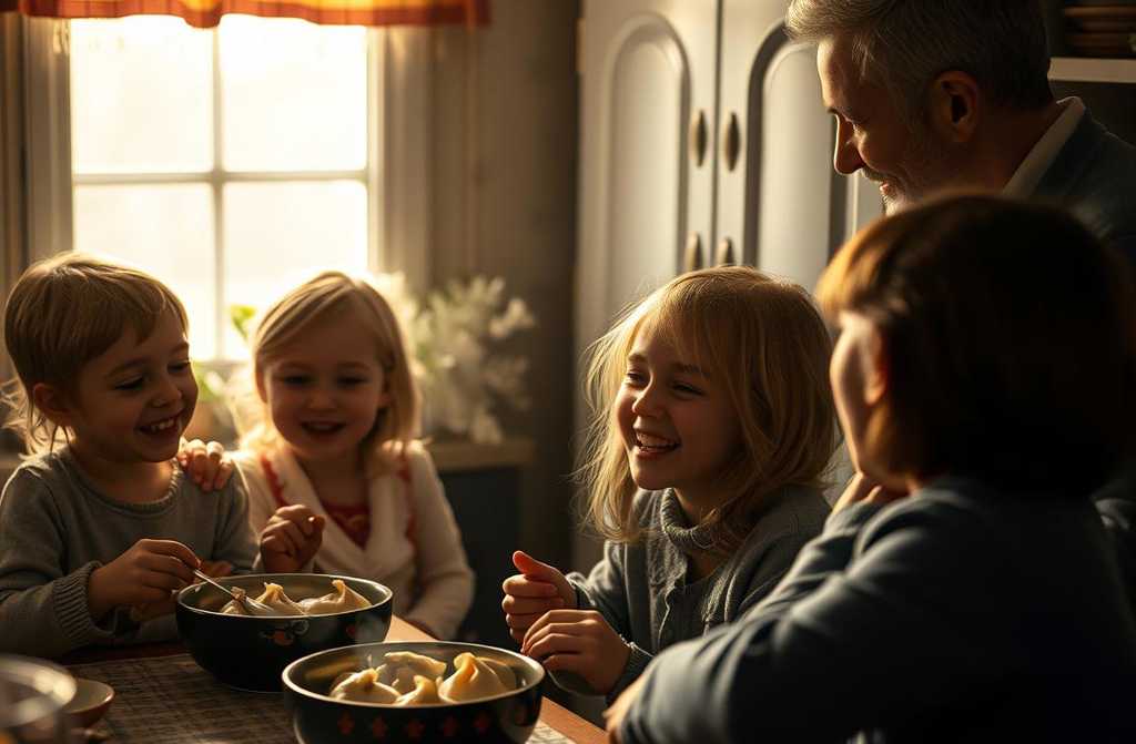 Her eldest, a broad-shouldered lad of twenty, pokes his head round the kitchen door.