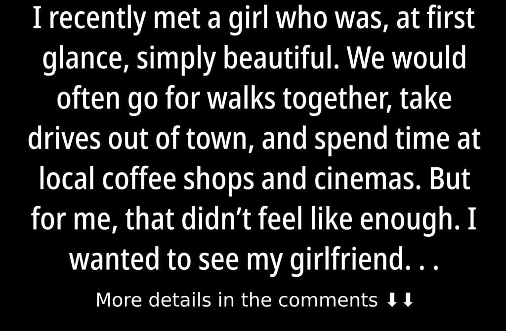 I recently met a girl who was, at first glance, simply beautiful. We would often go for walks together, take drives out of town, and spend time at local coffee shops and cinemas. But for me, that didnt feel like enough. I wanted to see my girlfriend all the time, not just when we went out. So, without lingering, I asked her to marry me. Why put it off? We loved each other, enjoyed our time together, and living together would only bring us closer. So, we got married.