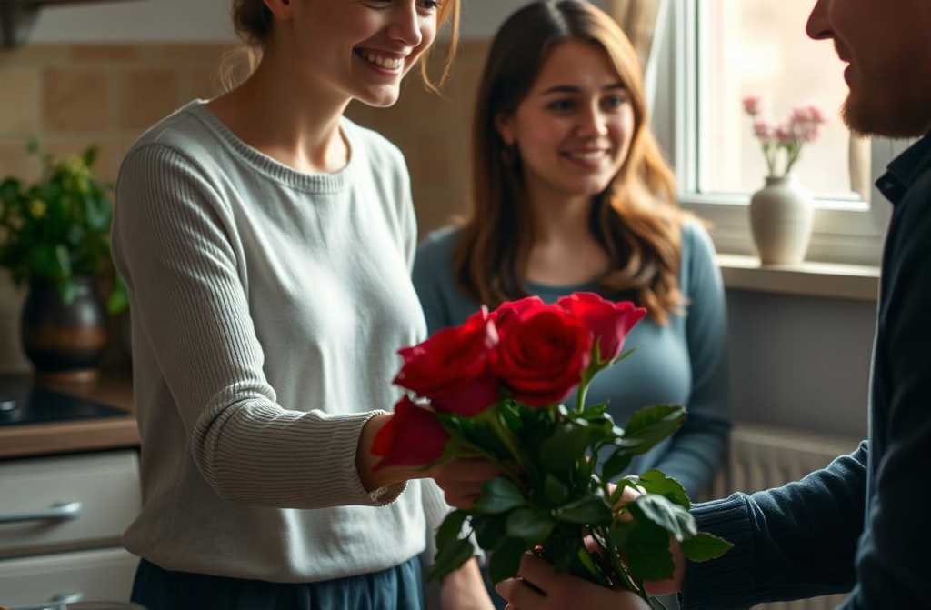 That evening something unexpected happened. James returned with a massive bouquet of red roses and a bag from the bakery her favourite eclairs.