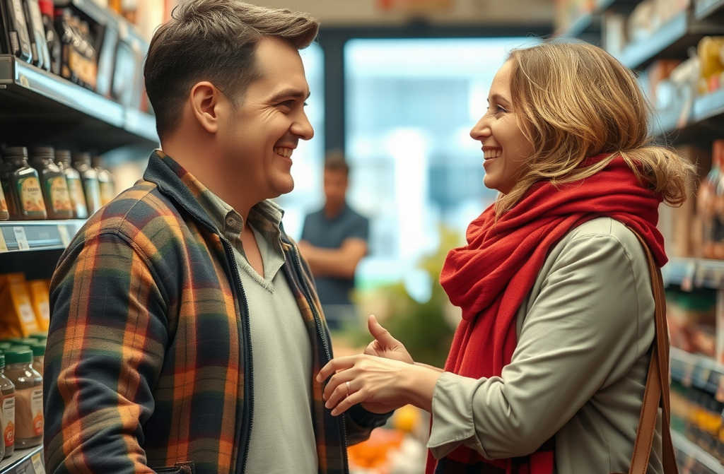I stood by the shelf with tins of fish, endlessly pestering the shop assistant with questions about what sort of fish each tin contained and what exactly it was preserved in. The assistant started serving another customer, so I turned instead to a young lady nearby. I gazed at her for a moment, beginning to find her figure oddly familiar. She had a comical messy bun perched atop her head, almost like a pair of horns, a huge, scarlet scarf, and a long, black coat.