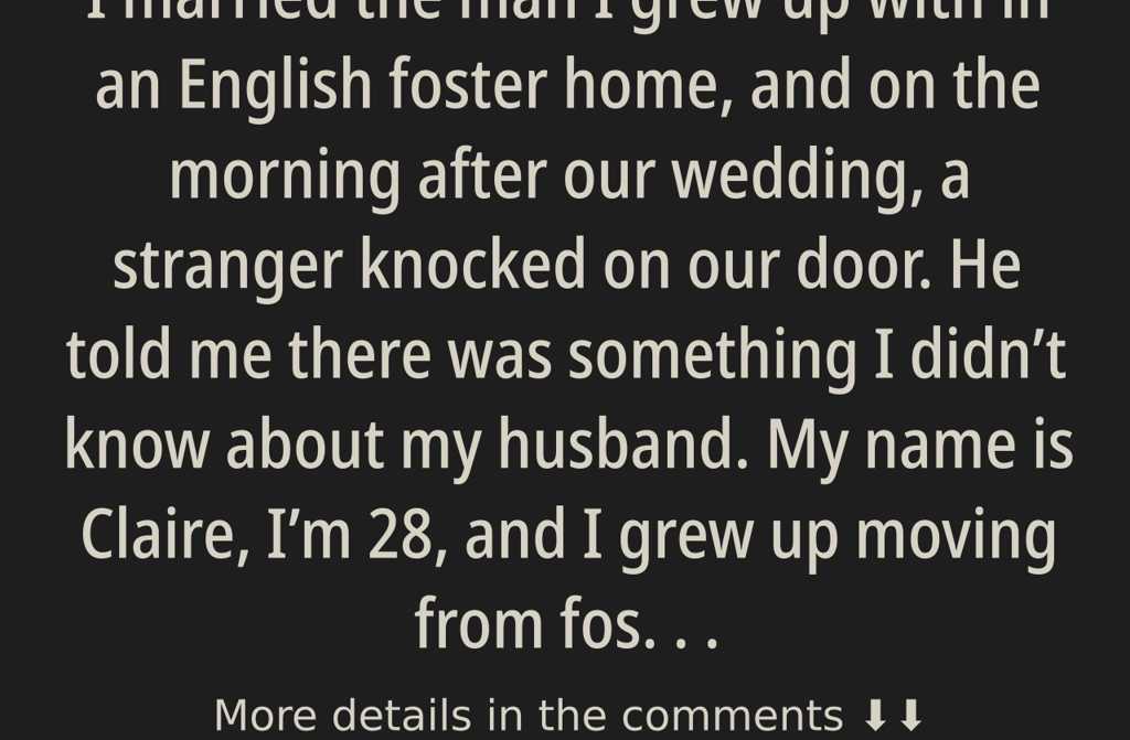 I married the man I grew up with in an English foster home, and on the morning after our wedding, a stranger knocked on our door. He told me there was something I didnt know about my husband.