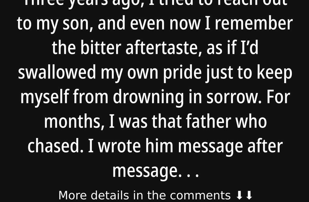 Three years ago, I tried to reach out to my son, and even now I remember the bitter aftertaste, as if Id swallowed my own pride just to keep myself from drowning in sorrow.