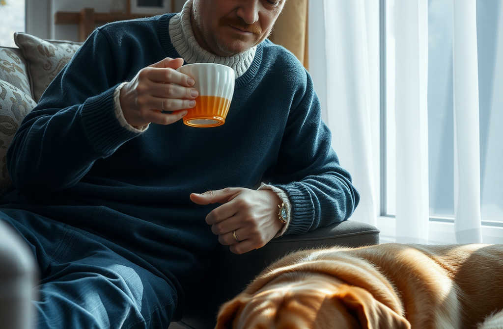 Caesar rose with effort, padded over and pressed his head gently against Mr Lawrences leg. Not begging, not needing anything just, I hear you.