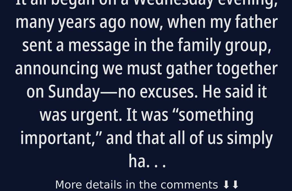 It All Began on Wednesday Evening When Dad Messaged the Family Group, Insisting We Must Meet on Sund…