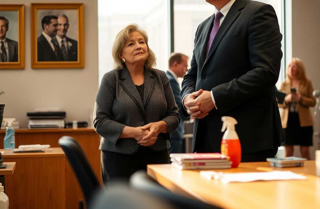 Soon enough, the office manager arrived and immediately addressed the older woman standing there: