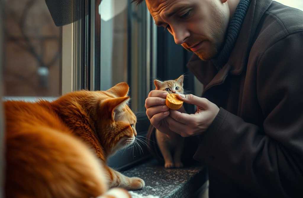 Instead, he began slipping small pieces of meat, a mince patty, a sausage, through the window. I ate. One night the man approached the glass, and I, trembling, lifted my paw to the pane and let out a soft meow.