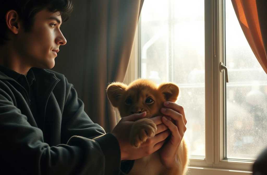One afternoon, wandering the backstreets, they stumbled upon a dimly lit exotic pet shop. Parrots squawked, monkeys chattered, but their eyes locked onto a small cage in the corner. Inside lay a lion cubno bigger than a house cat, with enormous, sorrowful eyes that seemed to understand far too much.