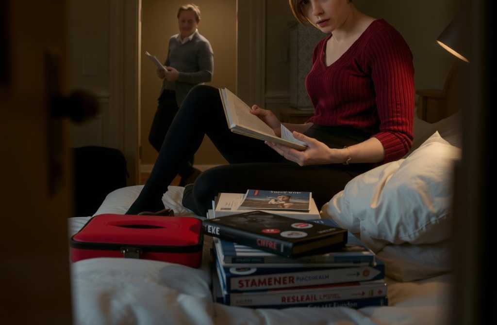 That evening, Claire nursed a mug of cold tea in her hotel room. Her suitcase leant against the wallfinally hers, with books, notebook, and the dress for her talk. She opened it, checked: laptop, charger, Mums photo, five books, her own writing pad. All there except, now, for one sheet.