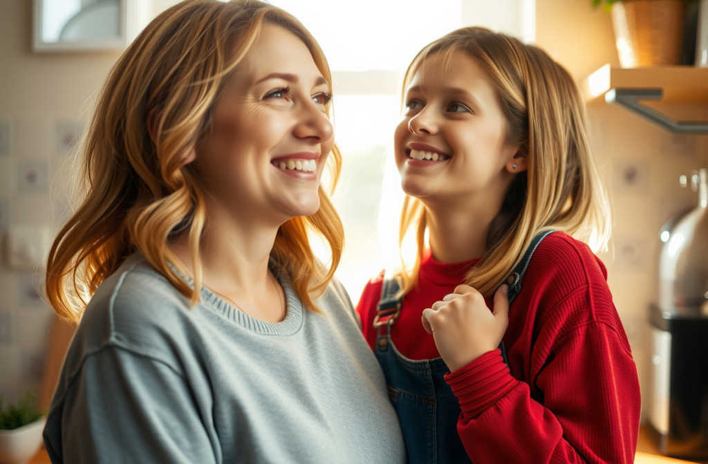 Emily nods, laughter and tears tumbling together now. She pulls him into a tight hug, amazed at the love filling their small kitchen.