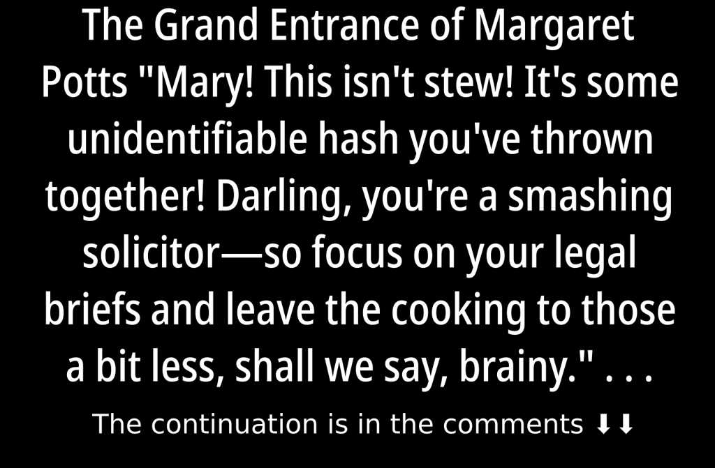 “And besides,” Margaret rallied, “I need to freshen up for tonights grand entrance! Its only fair the household makes a bit of effort now and again!”