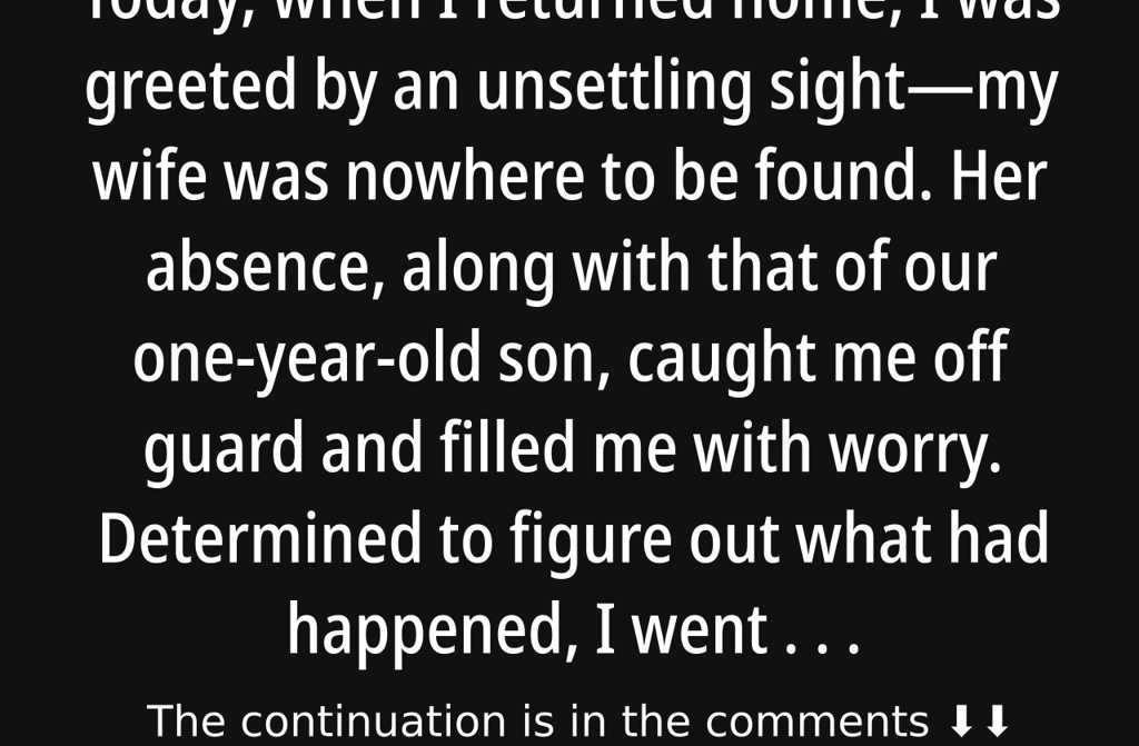 Today, when I returned home, I was greeted by an unsettling sightmy wife was nowhere to be found. Her absence, along with that of our one-year-old son, caught me off guard and filled me with worry. Determined to figure out what had happened, I went next door to ask my neighbour, only to see him stepping out of his house with my son in his arms.