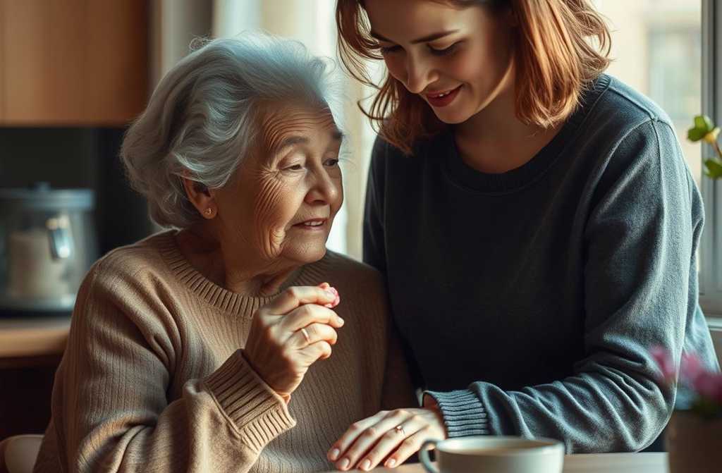 Gran struggled with the wrapper. When the cup was empty, Lily led her back to bed.