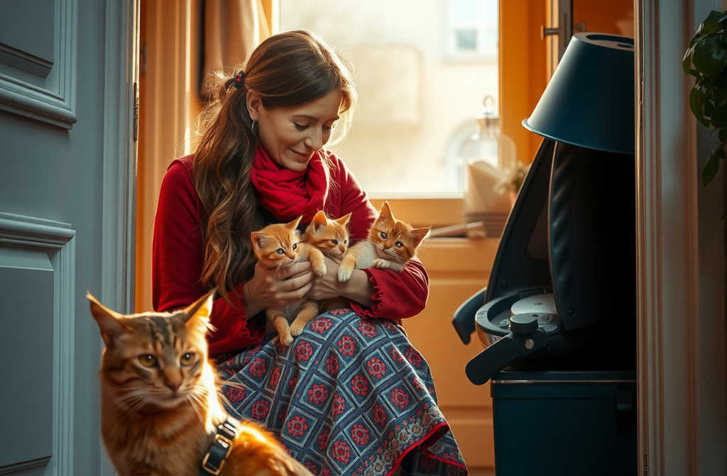 Tentatively, the tomcat tiptoed inside, glancing back to check that Ellie was still cradling the kittens.