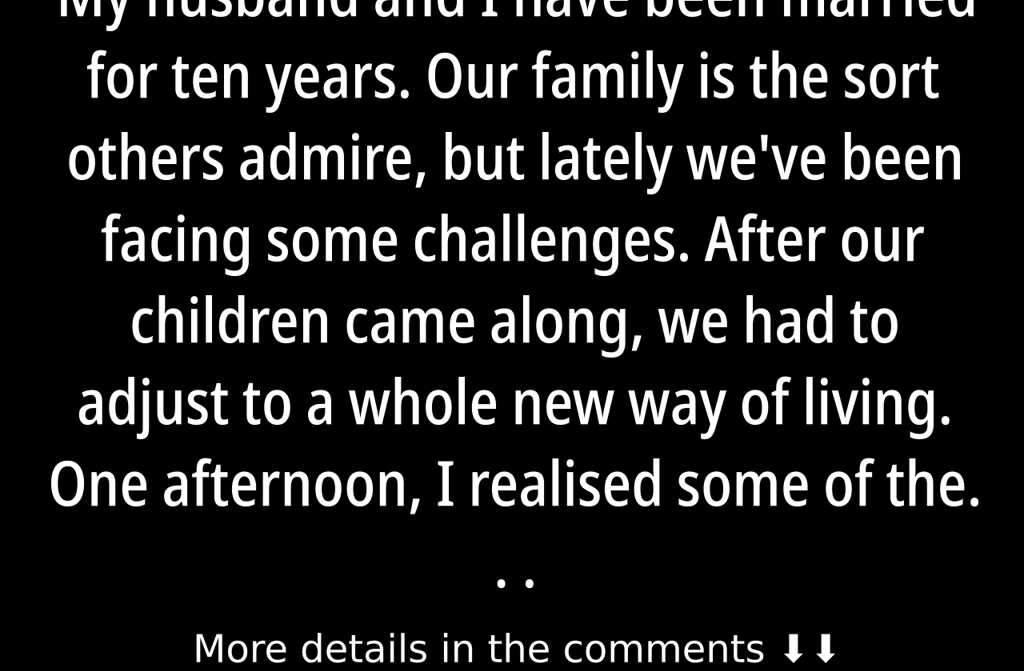My husband and I have been married for ten years. Our family is the sort others admire, but lately we’ve been facing some challenges. After our children came along, we had to adjust to a whole new way of living.