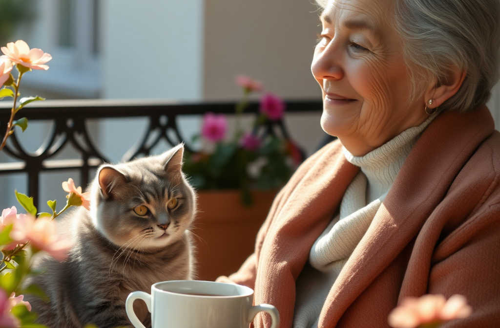 My mother is 89 years old. Two years ago, she moved in with me. Every morning by half past seven, I hear her waking up. She quietly chats to her elderly cat, Misty, and gives her breakfast. Then she prepares her own meal and sits out on the sunny patio with her cup of tea, waiting until she feels completely awake.