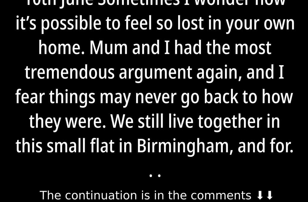 Sometimes I wonder how its possible to feel so lost in your own home. Mum and I had the most tremendous argument again, and I fear things may never go back to how they were. We still live together in this small flat in Birmingham, and for years shes been urging mesometimes gently, sometimes notto find my own place. The trouble is, Im officially listed here; legally, its my address. The number of reasons shes given me for moving out could fill a book, but I always hoped for a kinder relationship between us and a more peaceful life.